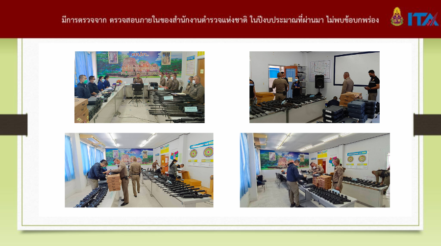 3. ตรวจสอบและตรวจนับอาวุธยุทธภัณฑ์ของสถานีตำรวจเพือ่ให้มีความพร้อมต่อการใช่งานในภารกิจประจำวัน