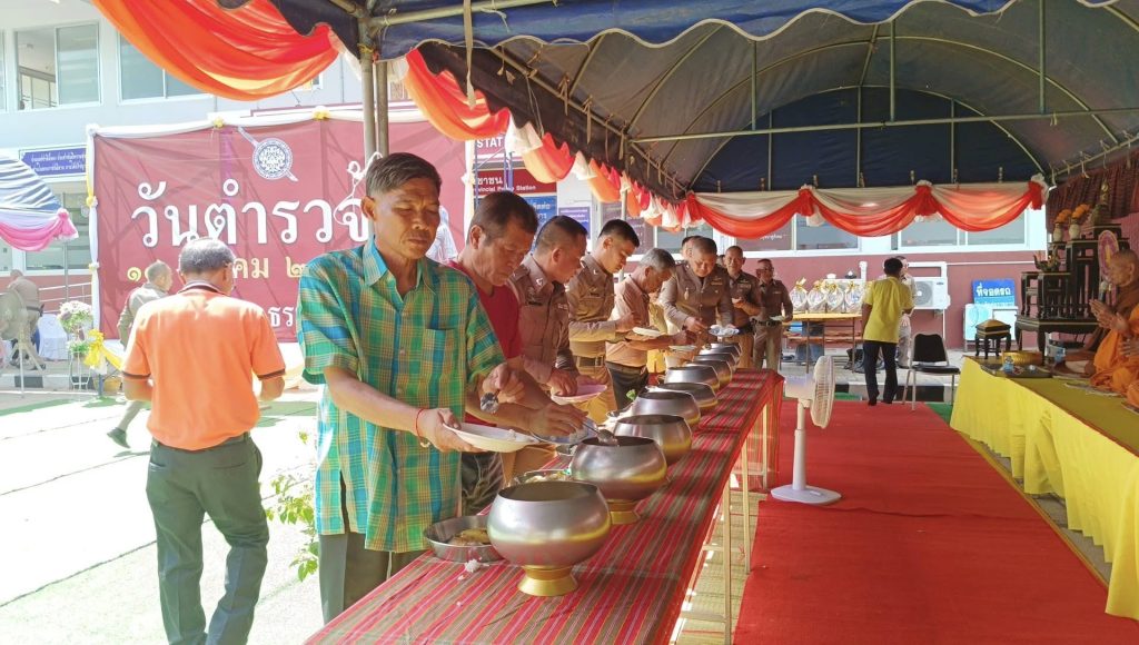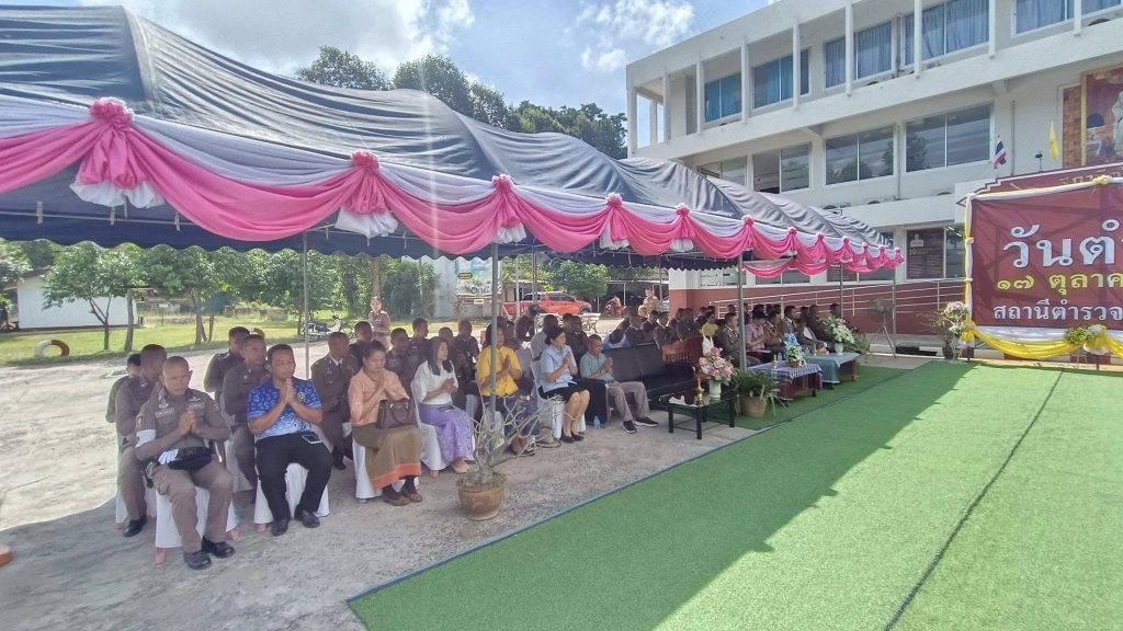 วันที่ 17 ตุลาคม 2567 พ.ต.อ.ขวัญเมือง โกสุมา พร้อมด้วย ข้าราชการตำรวจ สภ.ปรางค์กู่ กต.ตร.สภ.ปรางค์กู่ ร่วมพิธีสงฆ์ ถวายภัตตาหารเพลพระภิกษุสงฆ์ เพื่ออุทิศส่วนกุศล ให้แด่ข้าราชการตำรวจที่ล่วงลับไปแล้ว และเพื่อเป็นศิริมงคลแก่ข้าราชการตำรวจ เนื่องในวัน ตำรวจแห่งชาติ
